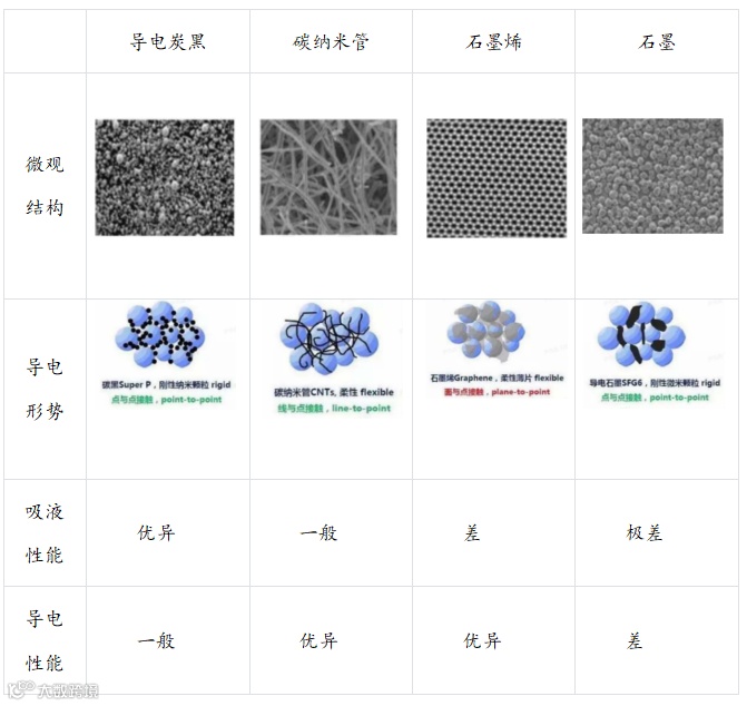 导电剂是锂电池的重要辅材,与正极材料、负极材料混合用于生产电极极片。导电剂在正负极材料的作用如下: