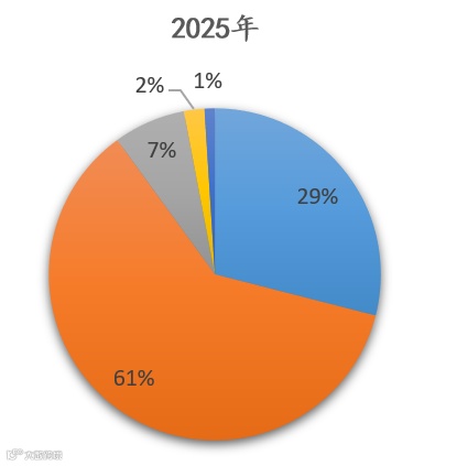 中国动力电池导电剂市场2021年到2025年各产品的占比分布情况如下图。到2025年,为了突破更高的能量密度,降低电池自燃率,锂电池的正负极将朝着硅碳负极、高镍三元的方向演进,由于碳纳米管拥有较大的长径比,理论上拥有最低的渗流阈值(即可以通过最少量的碳纳米管添加,构建整个体系的导电网络),碳纳米管的市场空间占比将从27%增加到61%。