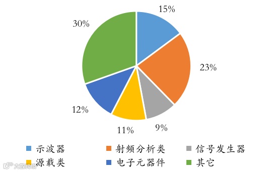 射频测试仪器属于电子测量仪器,主要对射频器件、模组、成品等进行信号检测。根据FROST&SULLIVAN数据,全球通用型电子测量仪器约占电测仪器总市场60%,其中射频类仪器在通用电子测量仪器领域的市场份额达到23%。