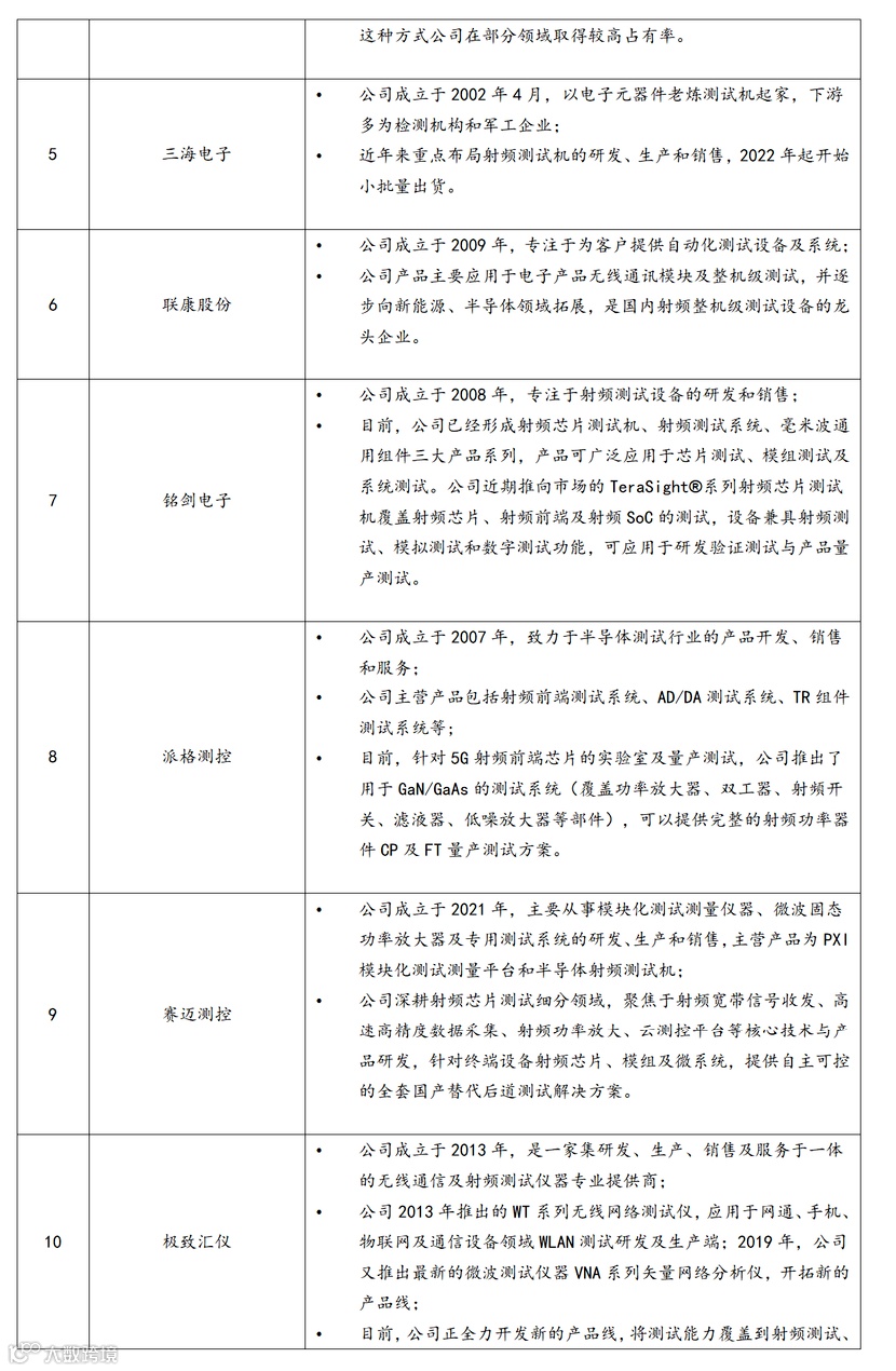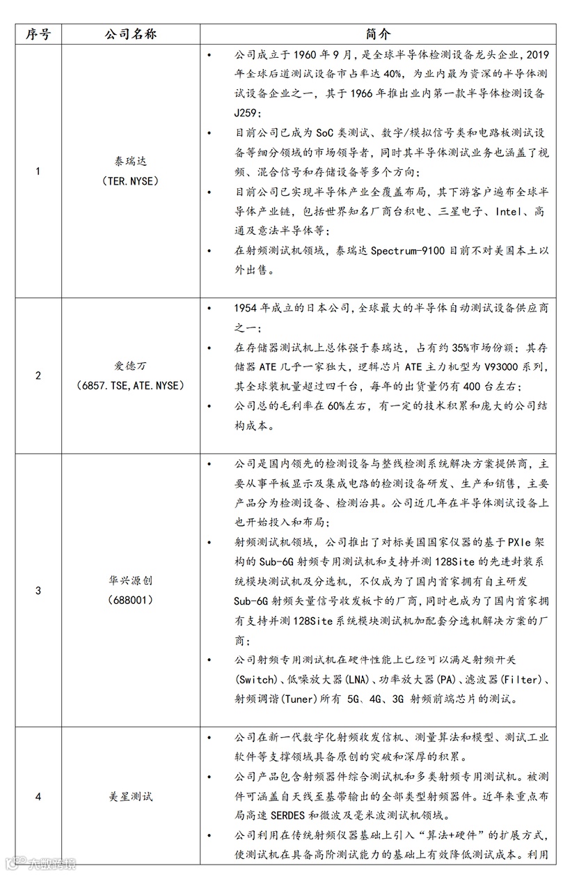 表6 射频测试机国内外主要厂商情况简介