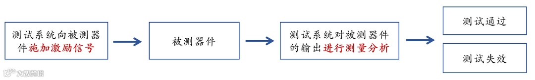 在整个测试流程中,一般测试系统会先向被测器件施加激励信号,再通过对被测器件的输出信号进行测量分析判断该器件是否失效。
