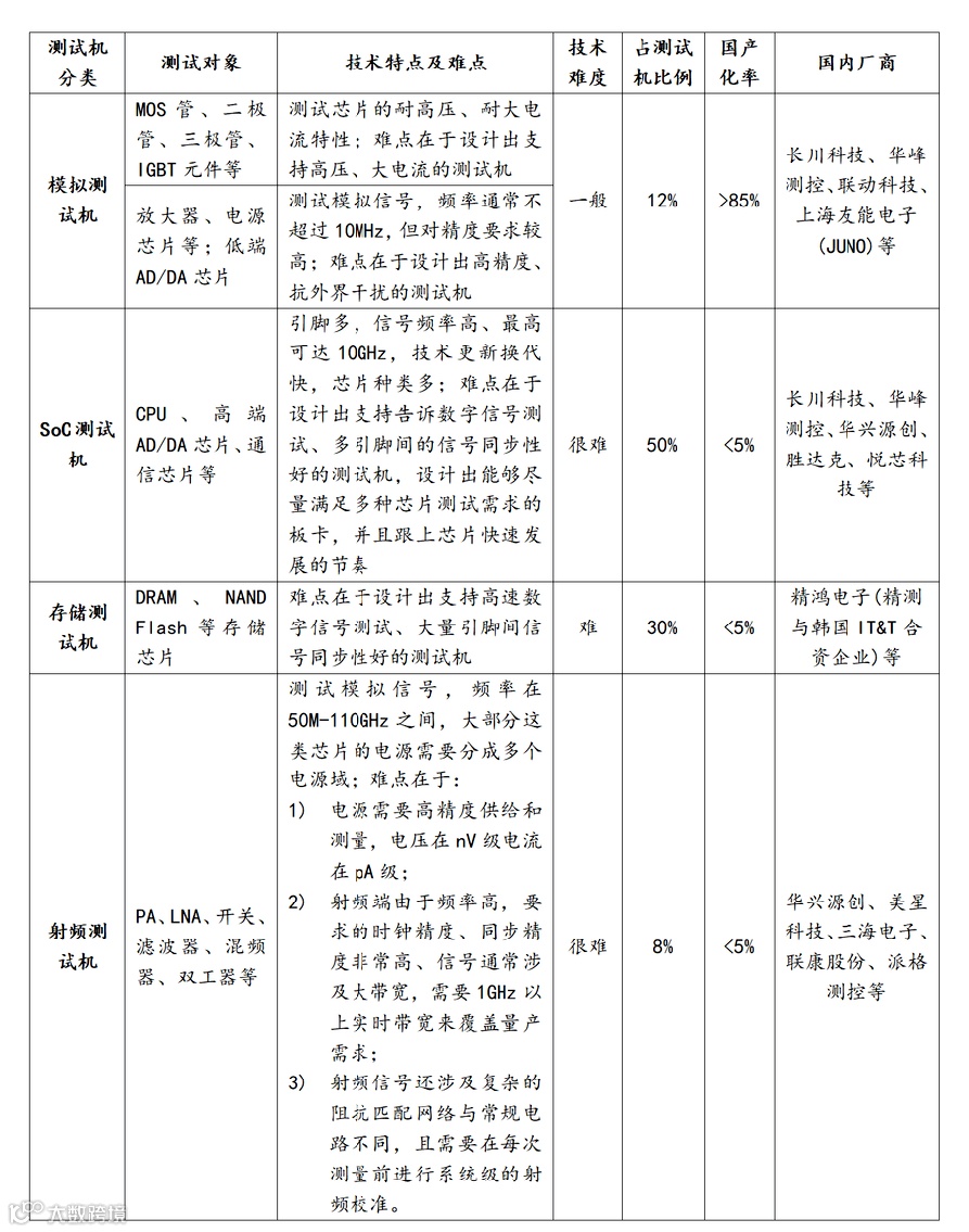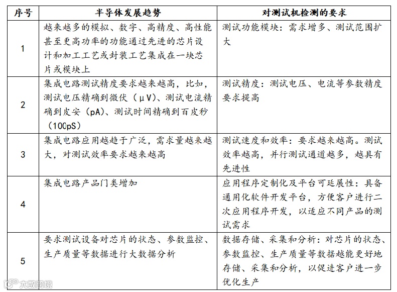 表2 半导体发展带动测试机更新迭代