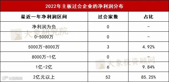 对于主板,2022年没有企业上市前一年净利润低于5000万,说明净利润5000万依然是一条红线。全面实行注册制下,主板定位将进一步突出大盘蓝筹市场特色,重点支持业务模式成熟、经营业绩稳定、规模较大、具有行业代表性的优质企业,发挥好国民经济“晴雨表”功能。