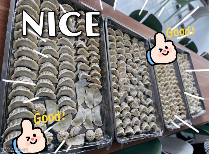 “一个人在家包饺子是寂寞,一群人在一起包饺子才是满足”现场有伙伴这样说道。煮熟的饺子出锅啦,配上丰富的调料,那味道真是美滋滋。大家围坐一起分享彼此的劳动成果,其乐融融。