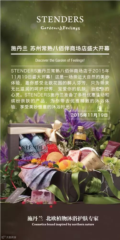 导读:STENDERS施丹兰常熟八佰伴专柜将于11月19日盛大开业!