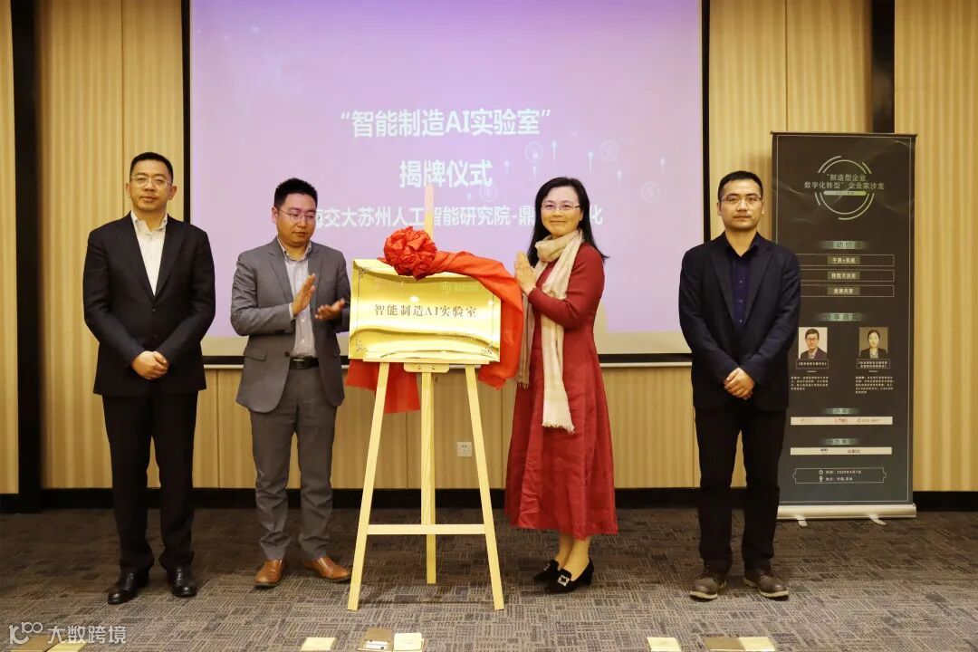 上海交大苏州人工智能研究院-鼎纳自动化“智能制造AI实验室”揭牌仪式也同步举行。该联合实验室将世界前沿机器视觉为核心技术导入,提供一站式智能制造全方位解决方案,对新型电机的研发、生产及质检进行全方位服务。