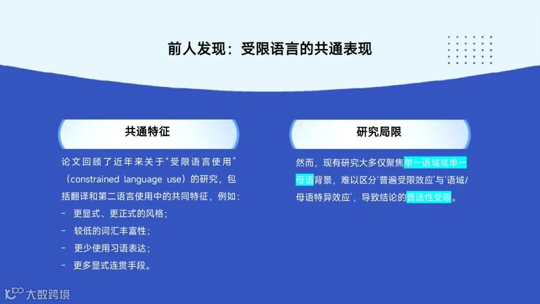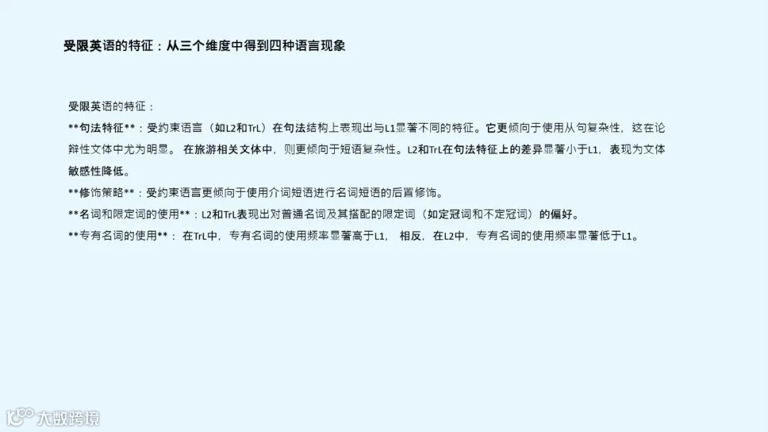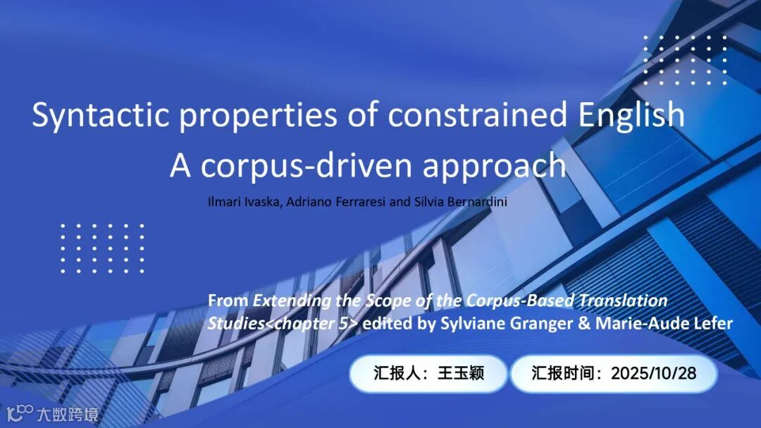 本次分享的文献《受限英语句法特征:语料库驱动视角》选自 Sylviane Granger 与 Marie-Aude Lefer 主编的学术著作 Extending the Scope of Translation Corpus-Based Studies。