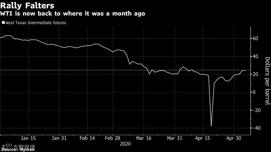 在五天内价格翻了⼀番之后,石油的涨势已不复存在,先前因减产而得到缓解的对供应过剩的担忧,现在被长远且不确定何时复苏的恐惧抵消了。