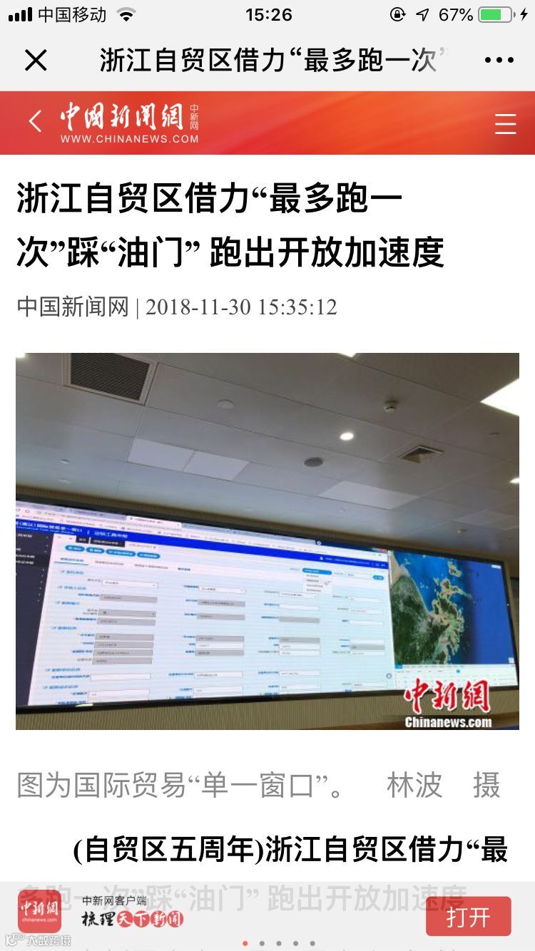 中新网:浙江自贸区借力“最多跑一次”踩“油门” 跑出开放加速度