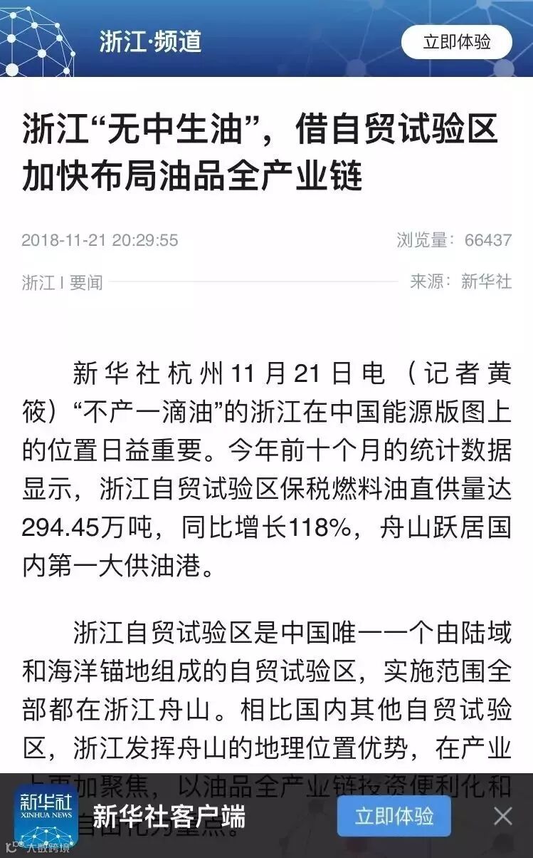新华社:浙江“无中生油”,借自贸试验区加快布局油品全产业链