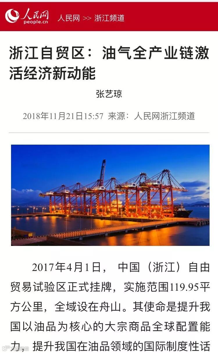 人民网:浙江自贸区油气全产业链激活经济新动能