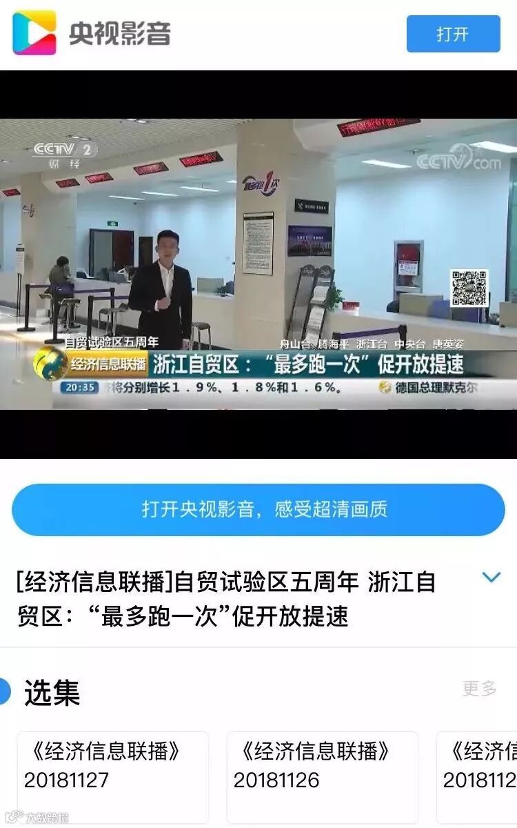 CCTV2套:浙江自贸区:“最多跑一次”促开放提速