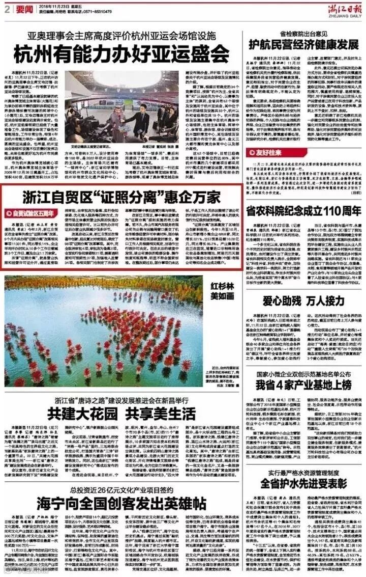 浙江日报:浙江自贸区“证照分离”惠企万家