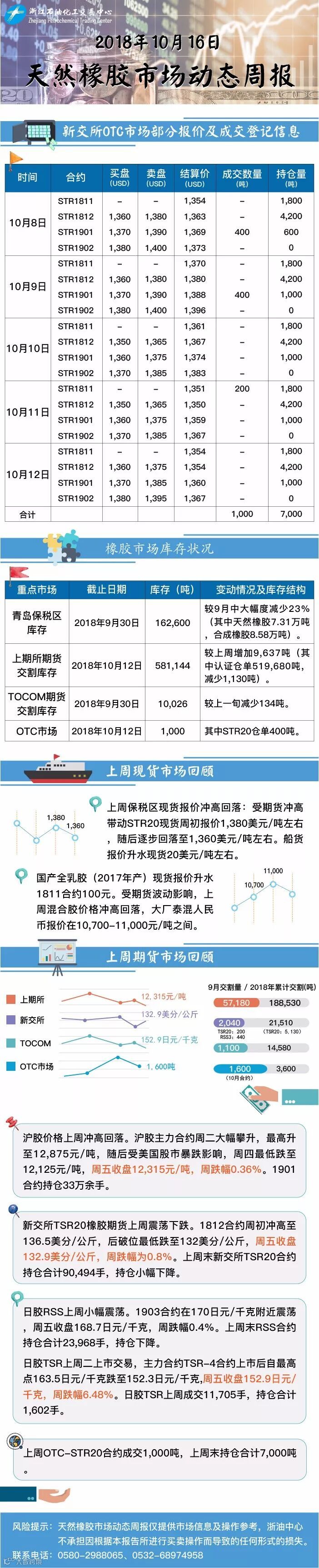 2018年10月16日天然橡胶市场动态周报