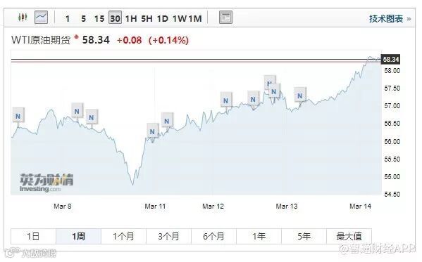基于OPEC的减产计划,WTI原油期货在过去一周里小幅上涨,截止发稿时间,报58.34美元/桶。