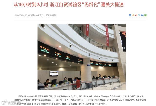 浙江在线:浙江自贸试验区——一站式服务打造全国首个无纸化通关口岸