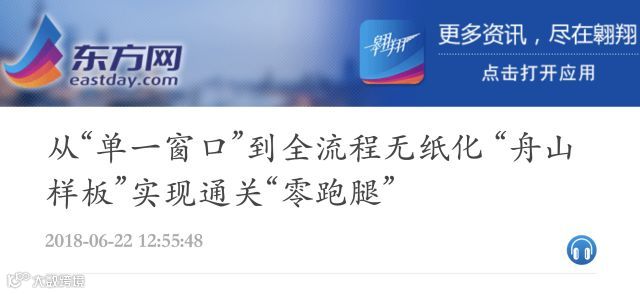东方网:从“单一窗口”到全流程无纸化 “舟山样板”实现通关“零跑腿”