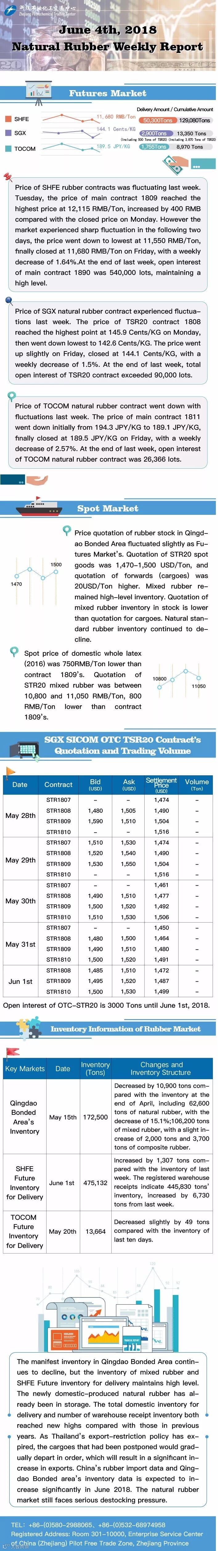 June 4th 2018 Natural Rubber Weekly Report