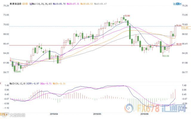 截止当前,美油上破70美元关口,现报70.43美元/桶,日内涨幅3.45%;布伦特原油现报76.17美元/桶,日内涨幅2.19%。
