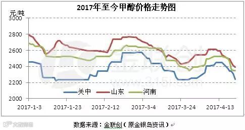 自3月份下跌以来,华东港口作为本次下跌行情中最受影响的市场,未有止跌行情,且多处于期现货联动下跌过程。4月中旬附近,甲醇期货主力换月至MA1709合约,作为远期贴水合约,现货市场被进一步拖累下跌,江苏现货一度跌至2550元/吨附近,而临近月底,甲醇期货主力低位小幅反弹,虽反弹力度仅有100元/吨,然对现货市场得以支撑,加之传闻港口某停车装置将于月底重启,市场低端抄底情绪突发,现货价格亦得以再次走高至2600元/吨附近。然因对5月国内供给、进口量增加预期,内地、外盘价格继续下滑使得港口现货难以企稳,市场重回跌势。