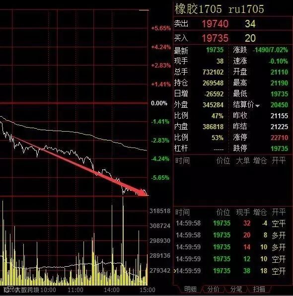 周五(1月20日)大宗商品集体下挫,橡胶重挫尾盘现跌停。
