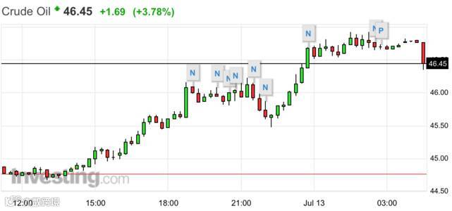此外,石油价格上涨。WTI 8月原油期货收涨2.04美元,涨幅4.56%,创4月8日以来最大单日涨幅,报46.80美元/桶。布伦特9月原油期货收涨2.22美元,涨幅4.8%,收报48.47美元/桶。