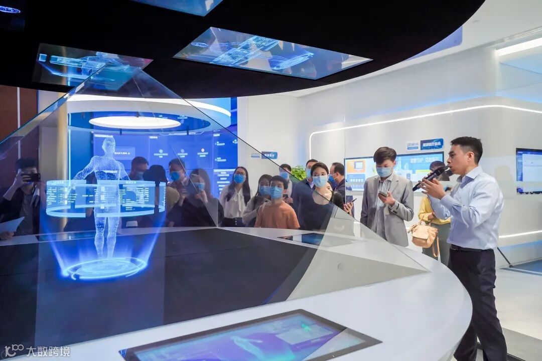 采访团在天津数字健康展示中心参观。天津数字健康展示中心供图