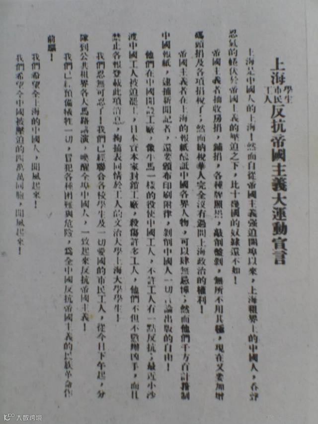 《上海学生市民工人反抗帝国主义大运动宣言》