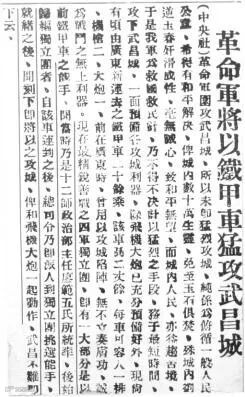 图为《民国日报》关于攻克武昌的报道。攻城前,第一营将士们纷纷写下遗书,以示必死的决心。此壮举在国民革命军和武汉百姓中被传为“古有抬棺出阵的故事,今有留书攻城的壮举”佳话。