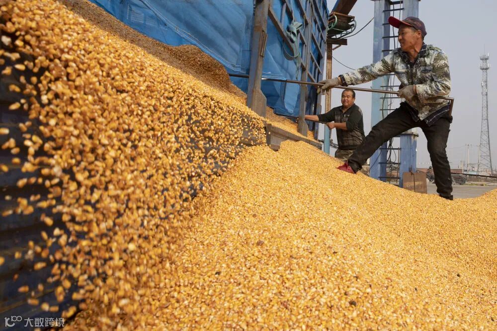 在黑龙江省宁安市合众粮食贸易有限公司,农民装卸玉米粒(10月27日摄)。新华社发(张涛 摄)