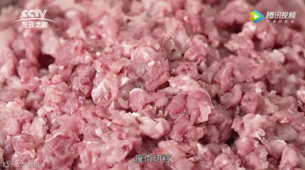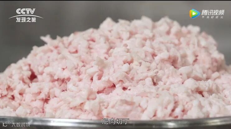 原材料的检查、验收后,会转入下一道工序。先将肥肉切丁,瘦肉切粒,然后把调好的配料,倒进肥肉里进行搅拌,搅拌的先后顺序也无比考究,先把肥肉丁和调料搅拌均匀后,再倒入瘦肉丁,翻滚吧,肉肉。