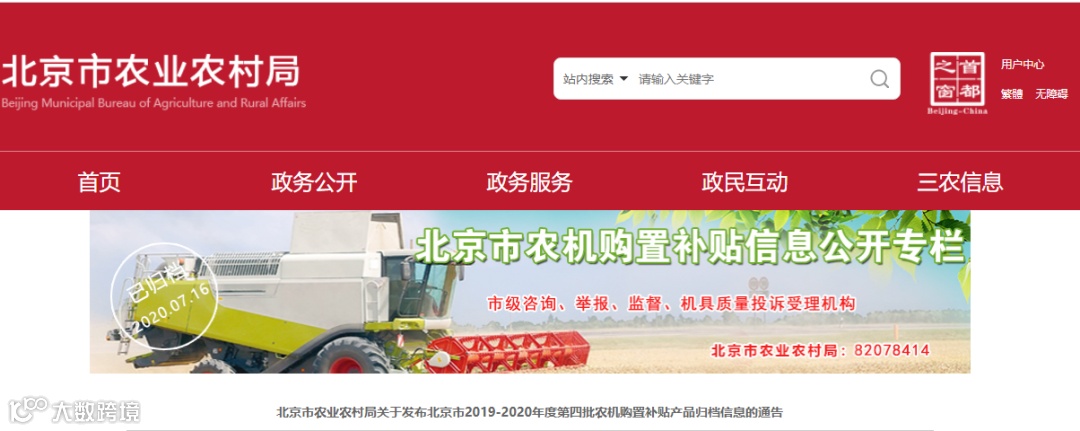 北京市农业农村局关于发布北京市2019-2020年度第四批农机购置补贴产品归档信息的通告