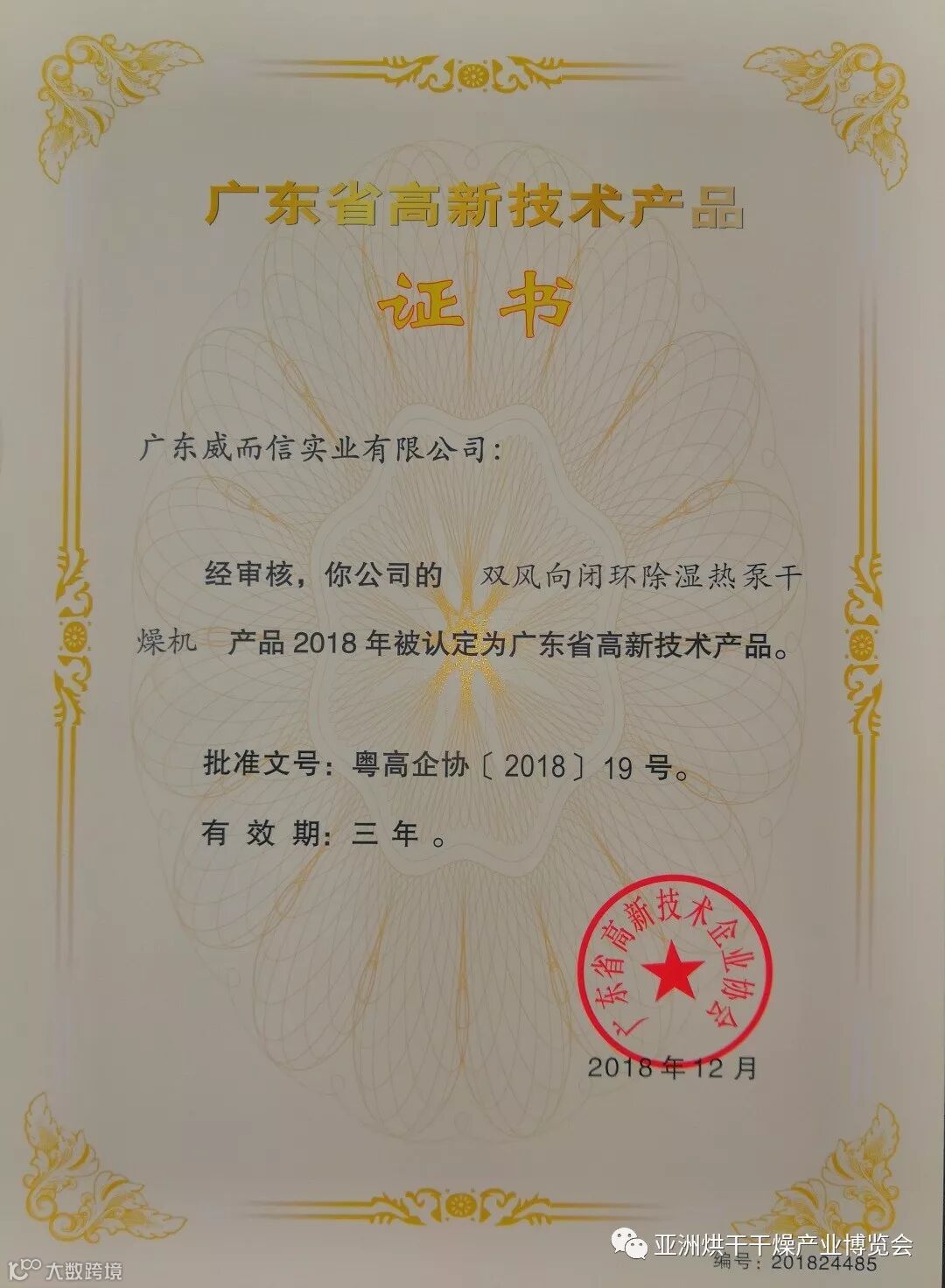 广东威而信实业有限公司将精彩亮相于2020年3月7日-9日在中国西部国际博览城隆重举办的2020中国西部(成都)烘干、干燥产业博览会的Tb09-1展位。欢迎全球各专业买家光临参观、洽谈合作。