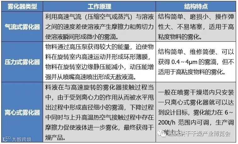 三种雾化器结构的喷雾干燥机的结构特点