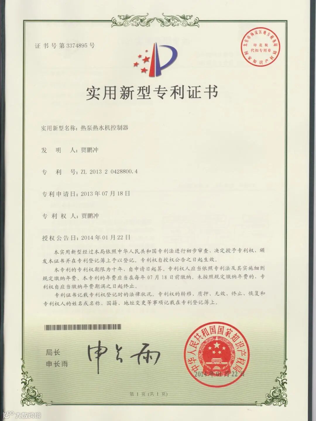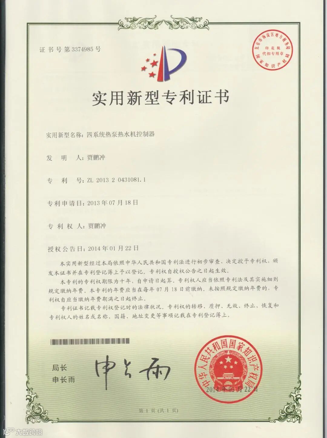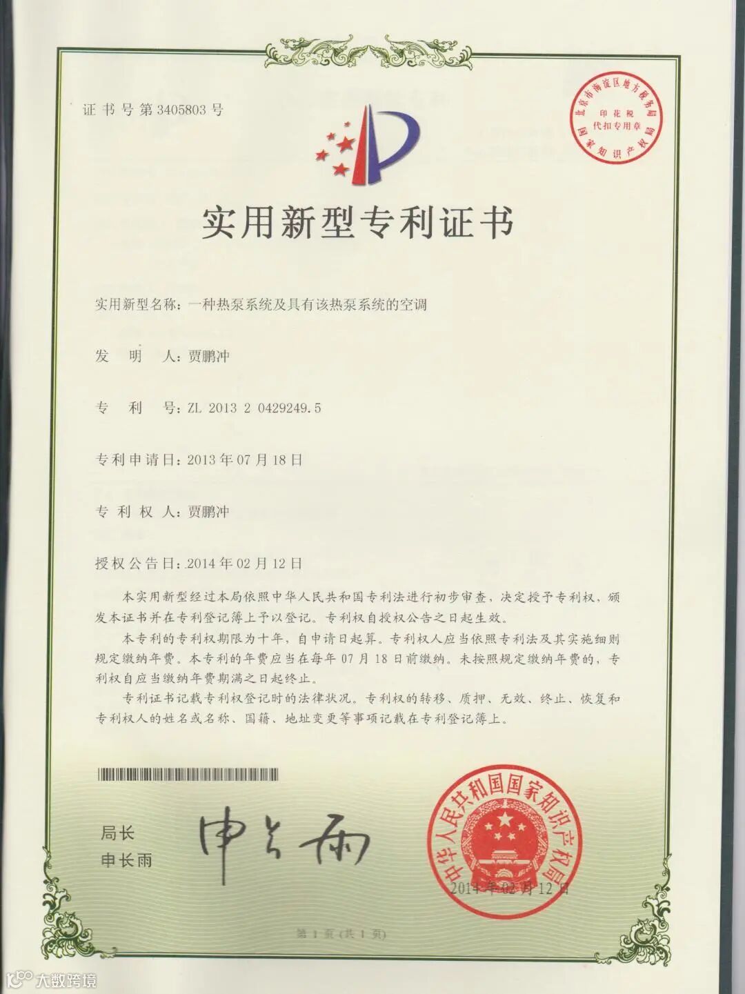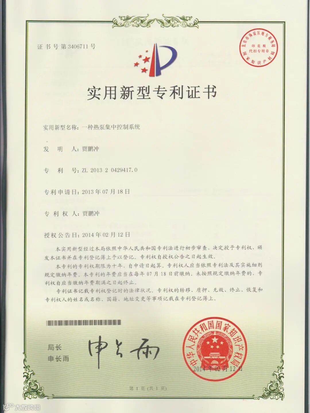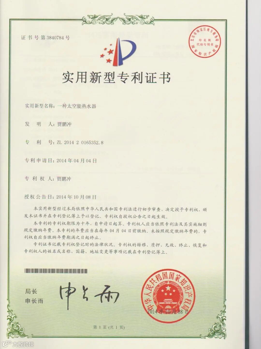 专利证书