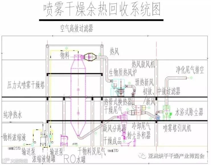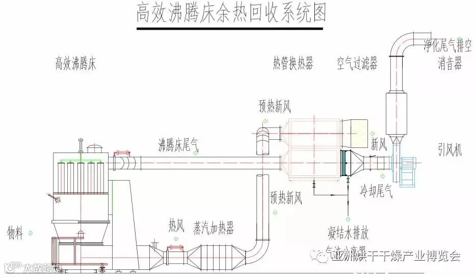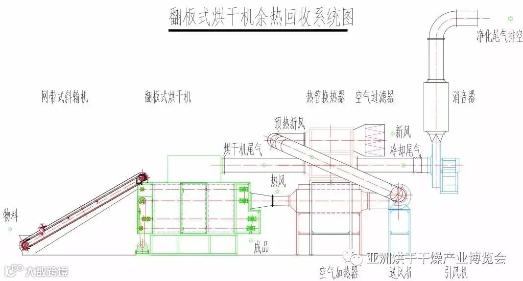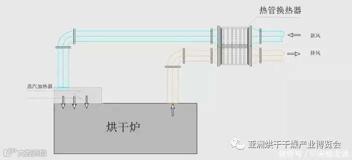 高效中低温热管换热器在烘干行业的工艺流程图如下: