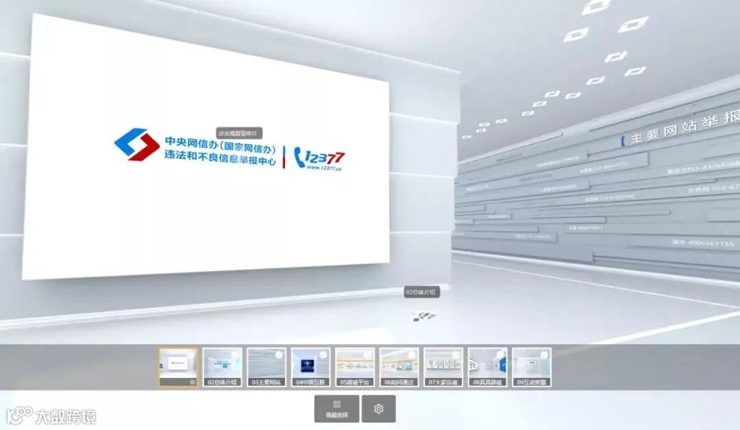 中央网信办举报中心以3D展厅的形式,立体生动地展现了近年来在推进网络举报工作和统筹开展网络辟谣等方面取得的工作成效,通过海报、宣传片等多种互动形式详细介绍了举报中心主要职责、举报受理范围、举报渠道等信息。