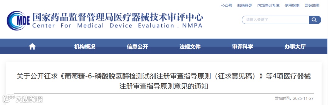 根据国家药品监督管理局2025年度医疗器械注册审查指导原则制修订计划的有关要求,我中心组织编制及修订了《葡萄糖-6-磷酸脱氢酶检测试剂注册审查指导原则(征求意见稿)》(附件1)、《全自动血型分析仪注册审查指导原则(2025年修订版)(征求意见稿)》(附件2)、《人表皮生长因子受体2基因扩增检测试剂(荧光原位杂交法)注册审查指导原则(2025年修订版)(征求意见稿)》(附件3)、《丙型肝炎病毒核酸基因分型检测试剂注册技术审查指导原则(2025年修订版)(征求意见稿)》(附件4)共4项医疗器械注册审查指导原则,经调研、讨论,现已形成征求意见稿,即日起在网上公开征求意见。