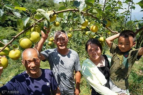 马德凤(左二)一家四代在梨树下。李斌摄 华龙网发