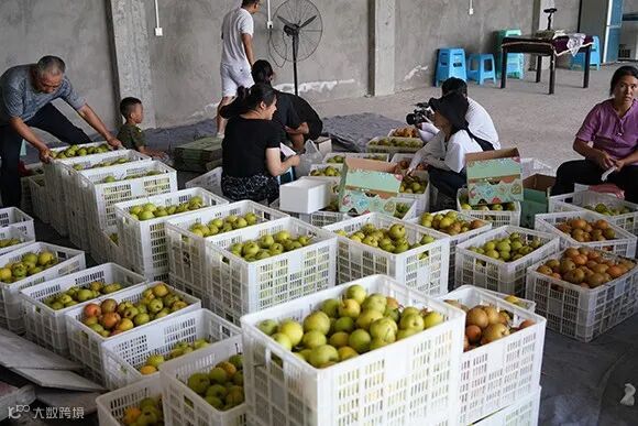 石柱县三河镇川主社区的北岭山农业园里,马德凤和女儿马小英以及农户们正在整理刚采摘回来的梨,这些都是网友今天的订单,他们要在下午6点前打包发往全国各地。