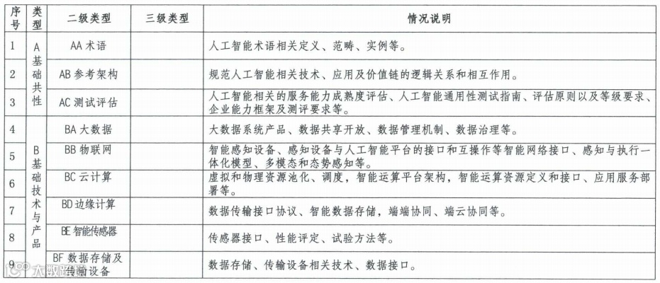 人工智能标准研制方向明细表