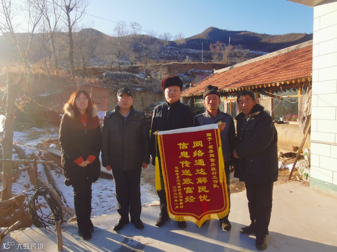 为了表达对驻村工作队情系群众、帮助村子铺设网络的感激之情,北沟自然村5组组长李森和10组组长李春泉代表村集体,将一面写有“网络通达解民忧,信息传送致富经”的锦旗送到驻村工作队的手中。