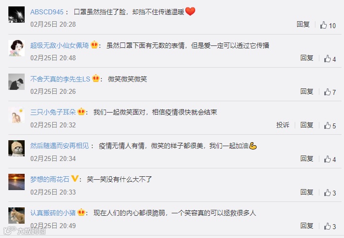 视频推出后,总播放量超千万,视频、情感、媒体等领域的权威博主和媒体机构积极转发,广大网友也纷纷对公益倡议点赞支持,留言表示“虽然口罩下面有无数的表情,但是爱一定可以透过它传播”“笑一笑没有什么大不了”。