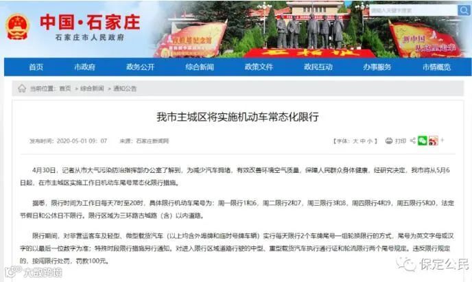 而河北省,目前只有石家庄市明确6日恢复限行,其他地区均未发布相关公告。