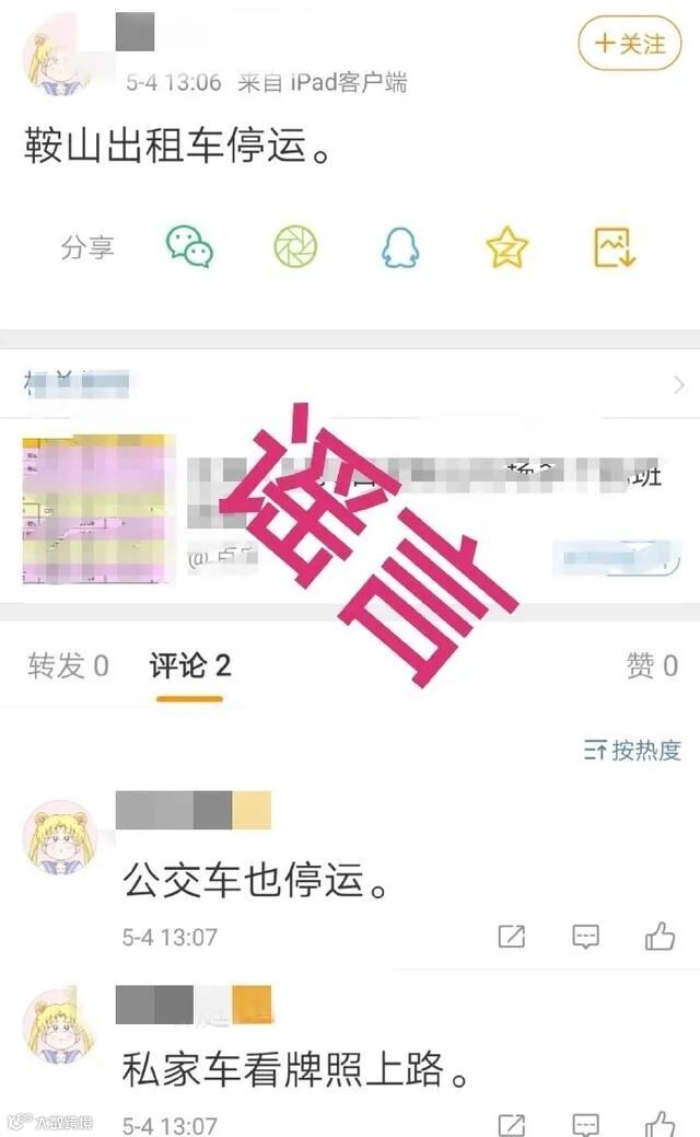 真相:辽宁省鞍山市交通运输局和省交通运输事业发展中心核实,目前,鞍山市出租车和各线路公交车运营正常,无停运情况。
