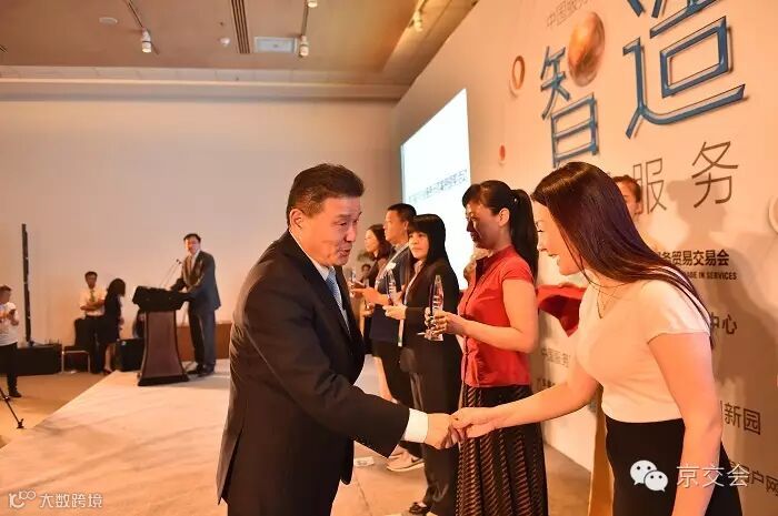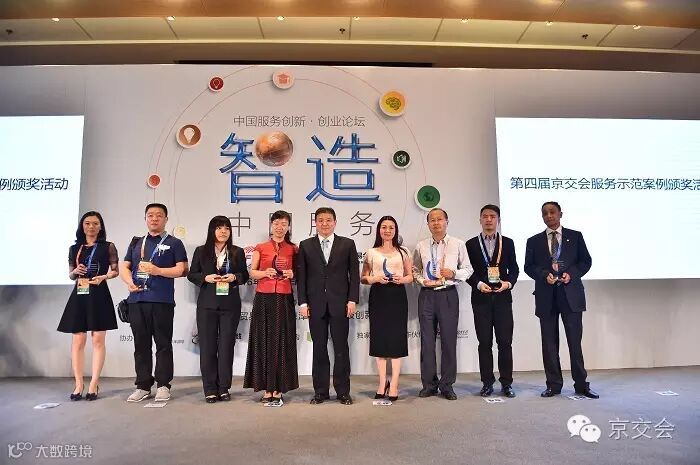 为充分发挥优秀企业在各领域的示范引领作用,极大地推动更多中国服务企业创新技术、创新模式,第四届京交会首次组织了优秀服务示范案例遴选活动,经过初选、专家评审打分和公众网络投票,最终选出科技创新服务示范案例、模式创新服务示范案例、跨界服务示范案例、最具国际化战略服务示范案例和最具发展潜力服务示范案例40个,5月30日在京交会上揭晓并举行了颁奖仪式,中国服务贸易协会执行副会长,京交会组委会办公室主任赵中屹,北京市商务委员会副主任、京交会组委会办公室主任倪跃刚为获奖企业颁奖。