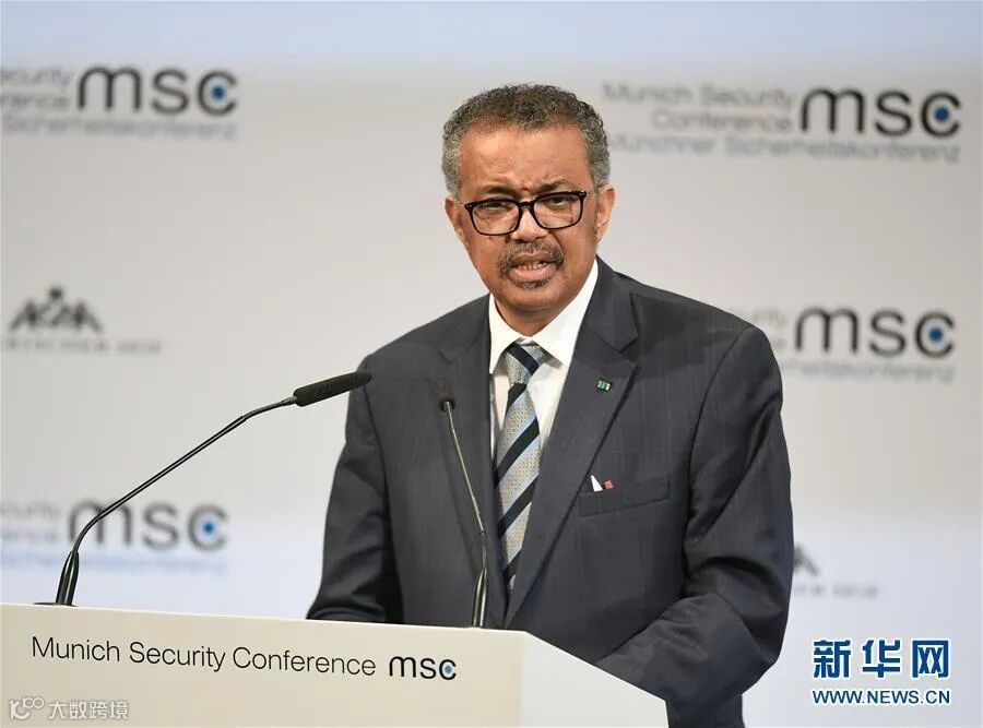2月15日,在德国慕尼黑,世界卫生组织总干事谭德塞在第56届慕尼黑安全会议上讲话。谭德塞表示,中国采取的从源头上控制新冠肺炎疫情的措施令人鼓舞,尽管这些措施让中国付出了很大代价,但为世界争取了时间,减缓了病毒向世界其他地方传播的速度。新华社记者 逯阳 摄