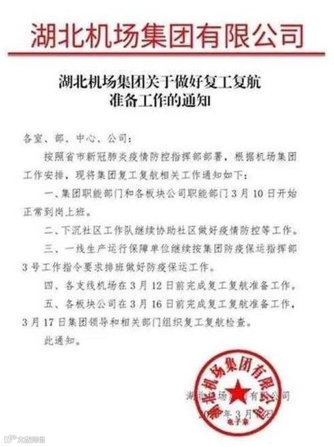 近日,一份《湖北机场集团关于做好复工复航准备工作的通知》在网上传播,不少网民称武汉天河机场复航日期已正式确定。