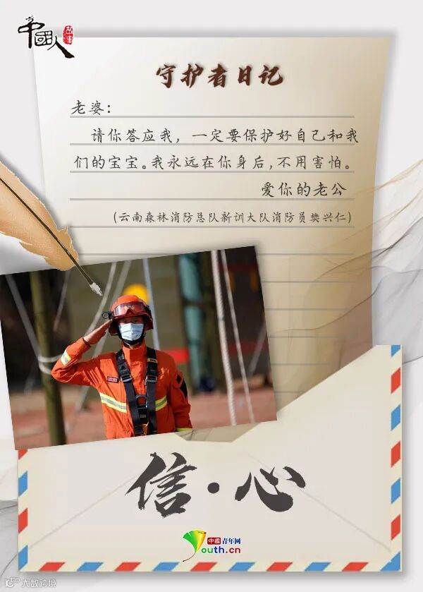 老婆,我在新训大队一切都好。疫情发生后,我们也成立了疫情防控党员突击队,我第一时间写了申请,我想和你并肩战“疫”。请你答应我,在战斗时一定要保护好自己和我们的宝宝,我永远在你身后,不用害怕!