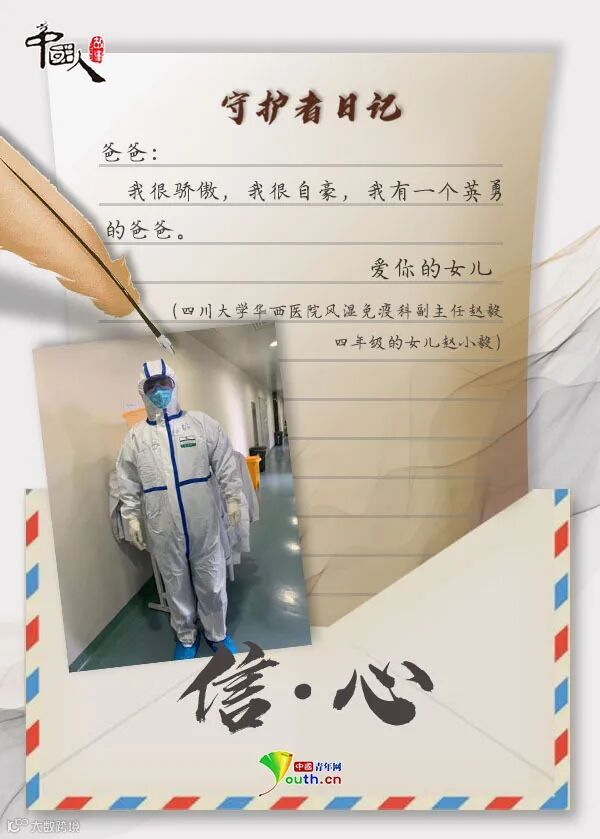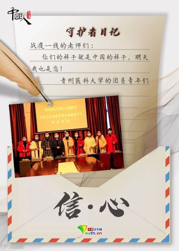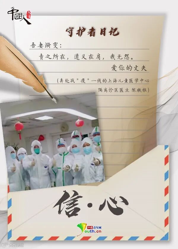 从前的我们或许只是年少不懂事的孩子,但是相信未来,我们也一定会好好接下您的班,在面对灾难的时候,也能够坚决地签下请战书,前往治病救人的最前线。你们的样子就是中国的样子,明天我也是您!